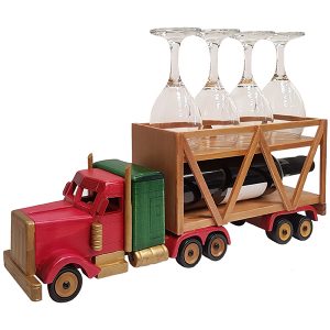 "סמי טריילר" משאית עתיק וינטג' מעץ בגוון מהגוני מעמד לבקבוק יין ו-4 כוסות