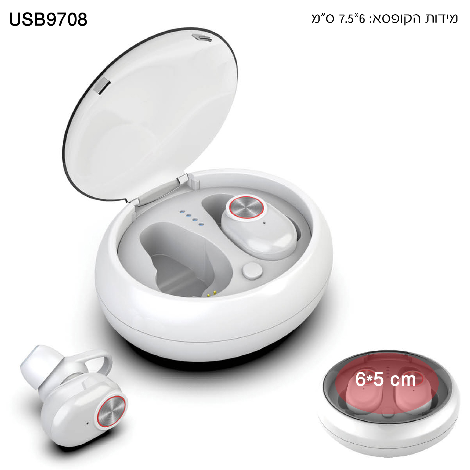 • קופסת טעינה יחודית עם נורית חיווי למצב הטעינה.