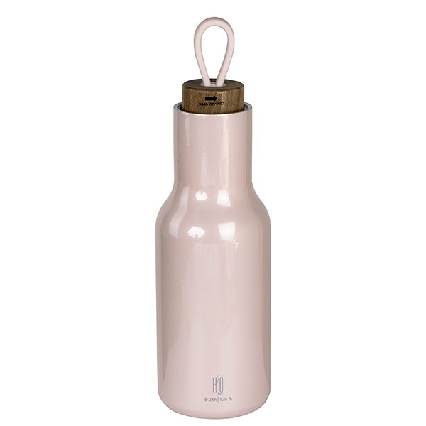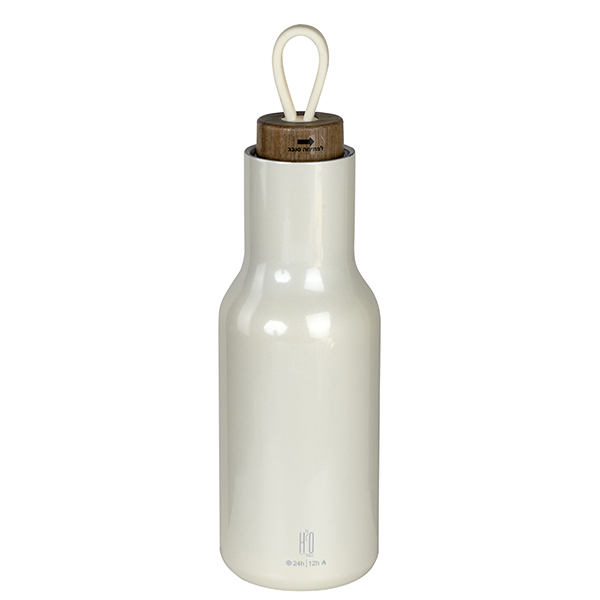 / בקבוק תרמי נירוסטה חם / קר 570 מ"ל עם מכסה עץ ומאחז סיליקון ידית במארז גליל מהודר מבית H2O-Pro