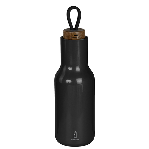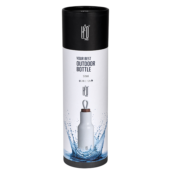 בקבוק תרמי נירוסטה חם / קר 570 מ"ל עם מכסה עץ ומאחז סיליקון ידית במארז גליל מהודר מבית H2O-Pro