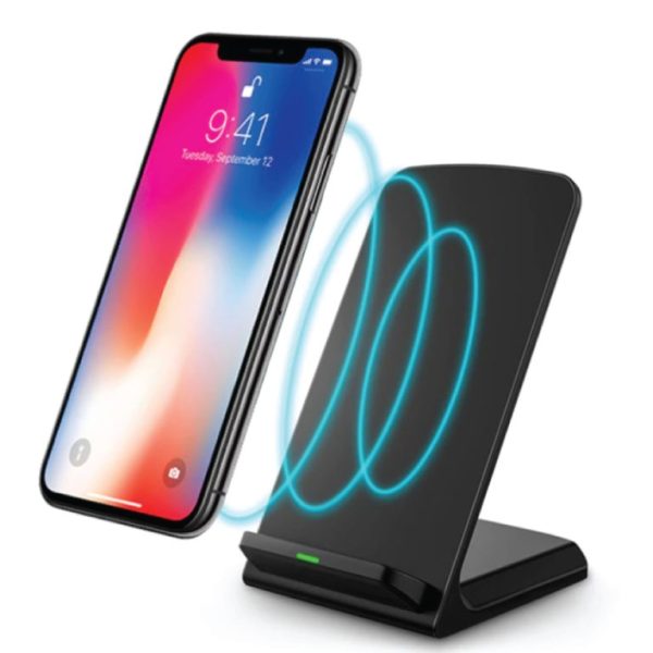 מעמד אוניברסלי שולחני לטעינה אלחוטית מהירה תקן QI ללא צורך בכבלים מניחים את מכשיר הטלפון על גבי המטען האלחוטי והמכשיר נטען