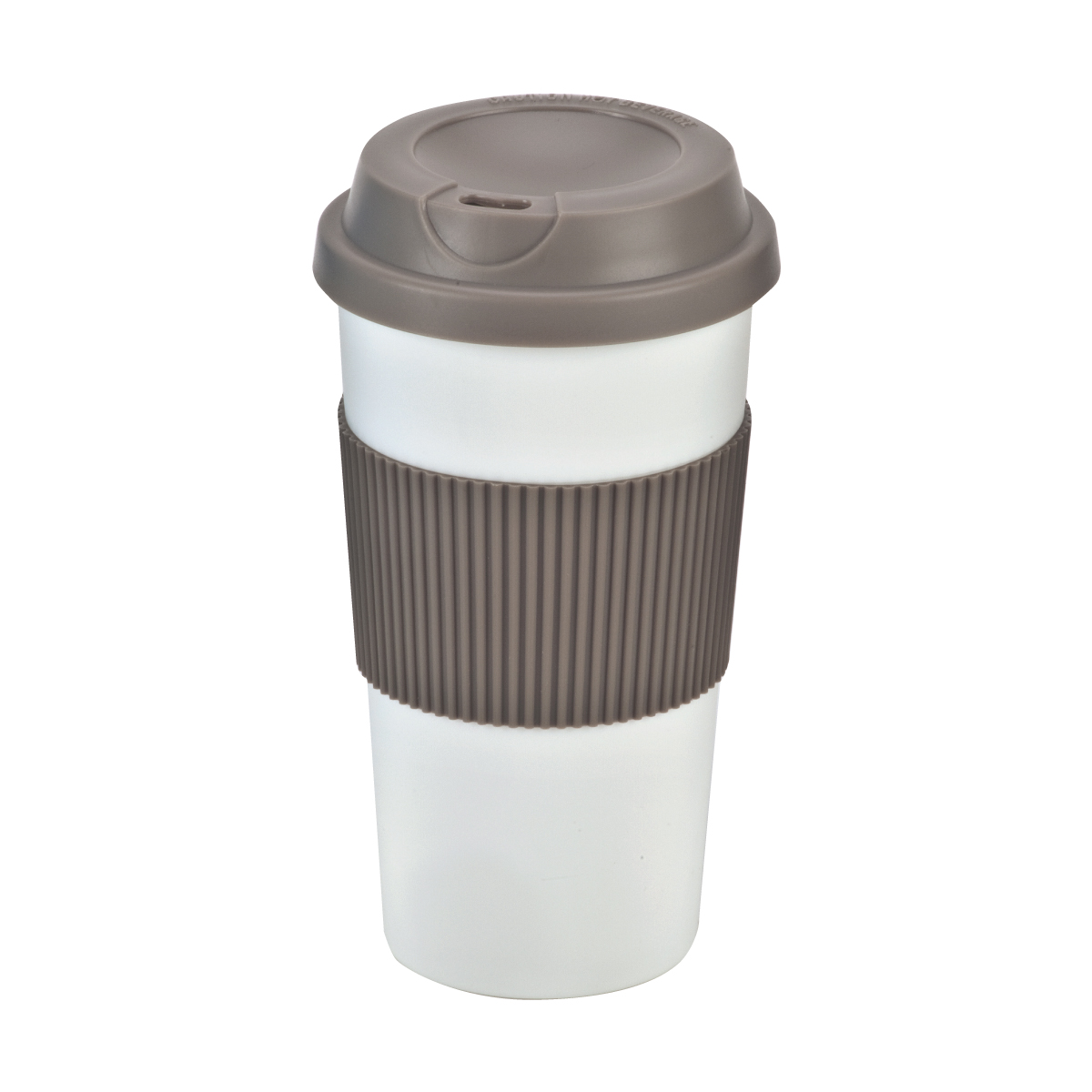 כוס טרמית מפלסטיק עם דופן כפולה וחבק סיליקון