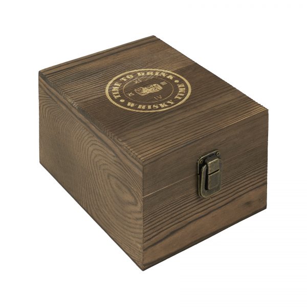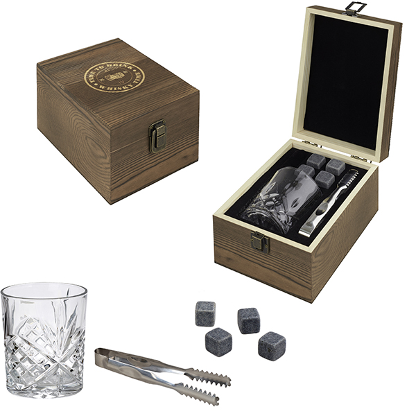 / מארז מתנה וויסקי הכולל כוס, מלקחיים, ו-4 אבנים בקופסת עץ מהודרת