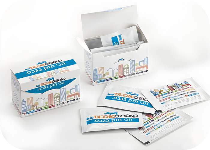 מארז 10 מגבונים אישיים מודפסים בקופסה מודפסת