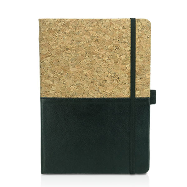 "נטורל" מחברת A5 כריכה קשיחה משולבת שעם טבעי ודמוי עור. סגירת גומי תואם עם 68 דפי שורה.
