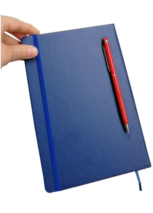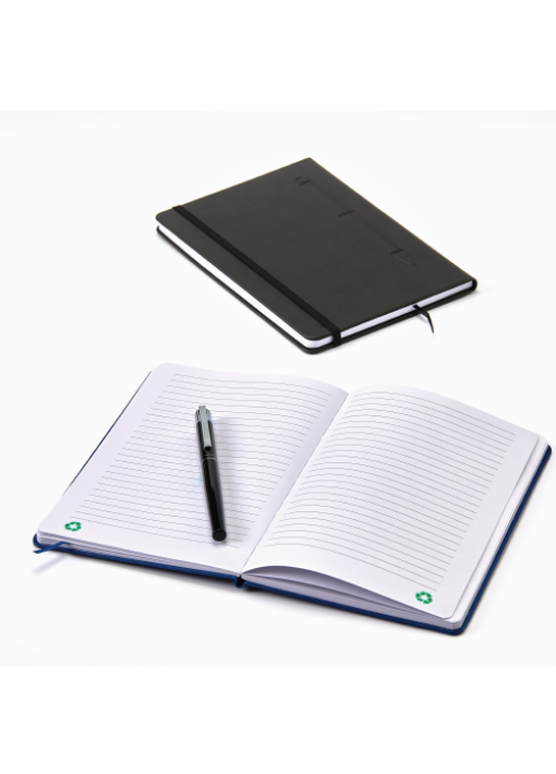 מחברת A5 ממחוזרת עם כריכת עור ומקום מגנטי לעט
