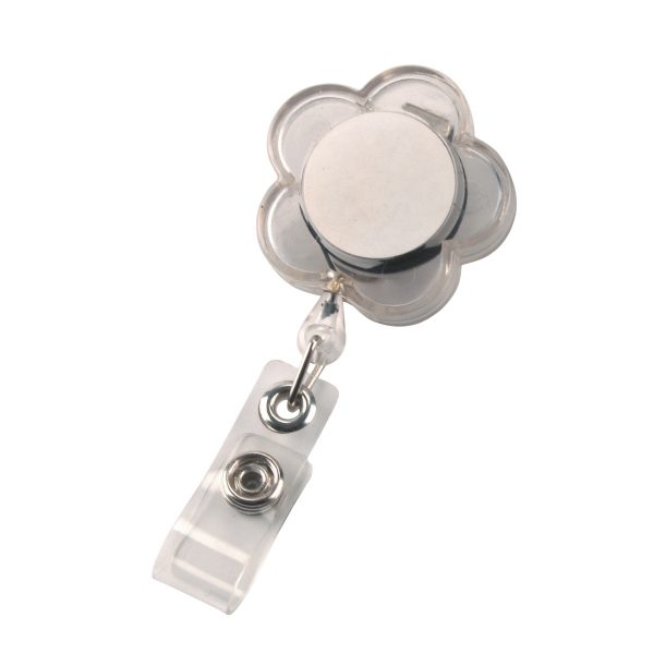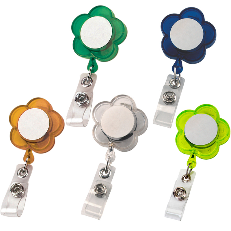 מחזיק לתג, עובד, בצורת פרח, עם חוט משיכה קפיצי