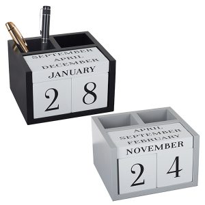 מעמד קלנדר תאריכון קוביות עם 2 כוסות לעטים