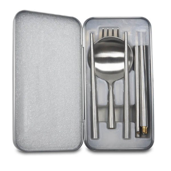 סט נייד 4 חלקים מתברגים הכולל: מזלג, סכין, צ'ופסטיקס, כף.