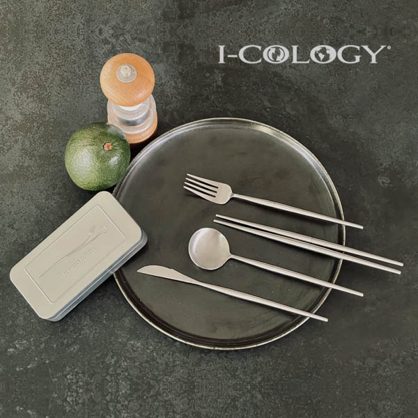"פורטלרי" סט סכו"ם רב פעמי מתקפל מנירוסטה איכותית.