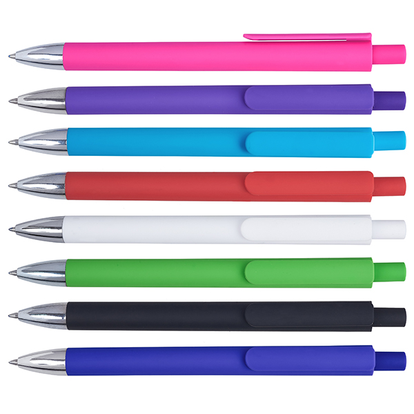 עט פלסטיק בעל שטח מיתוג גדול, בכתיבה קטיפתית חלקה ורכה בגימור RUBBERIZED