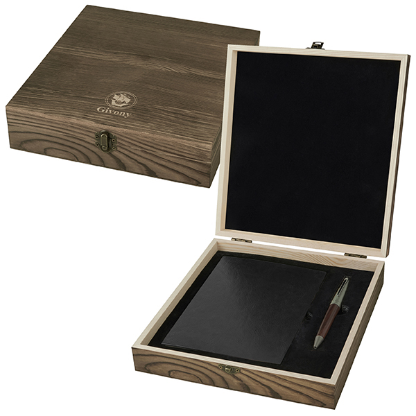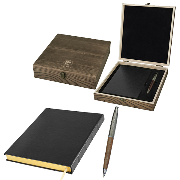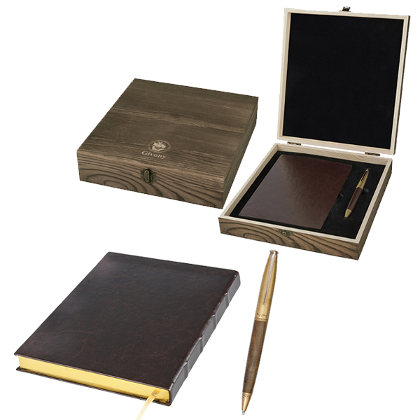 / ערכת מתנה מהודרת הכוללת עט, מחברת עסקים במארז עץ מבית המותג גבעוני