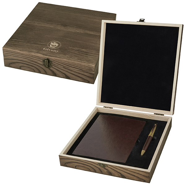 ערכת מתנה מהודרת הכוללת עט, מחברת עסקים במארז עץ מבית המותג גבעוני