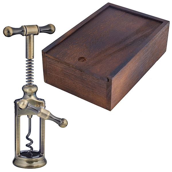 פותחן יין מעוצב רטרו מנחושת באריזת מתנה עץ