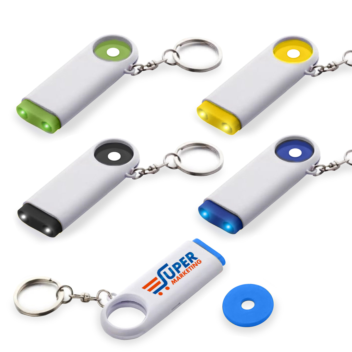 מטבע לעגלות משולב בגוף מחזיק המפתחות.
