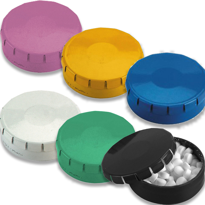 קופסת סוכריות בטעם מנטה חריף, ללא סוכר, כשר, קוטר 4.5 ס”מ