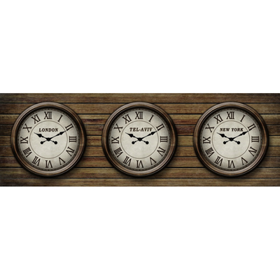 שעון קיר אנלוגי קנבס בינלאומי Tel-Aviv London New York דמוי עץ