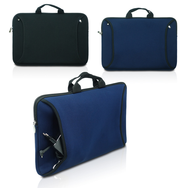 תיק למחשב נייד עשוי מבד ניאופרן. עם ידיות נשיאה ותא נוסף לאכסון. צבעים: שחור, נייבי