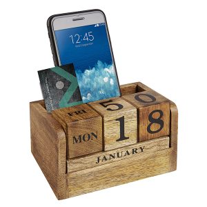 מעמד קלנדר תאריכון קוביות עץ טבעי עם מעמד כרטיסי ביקור וניידים